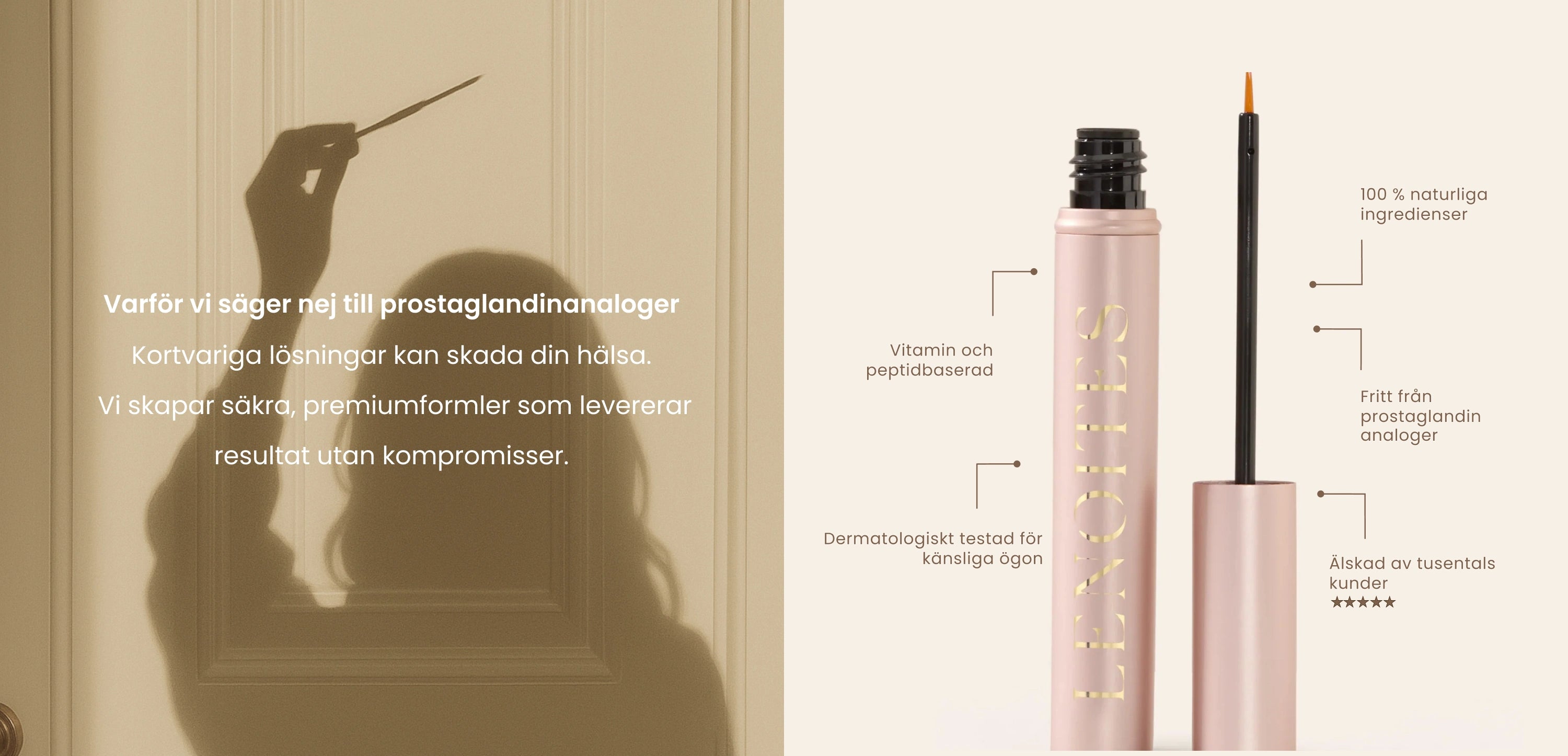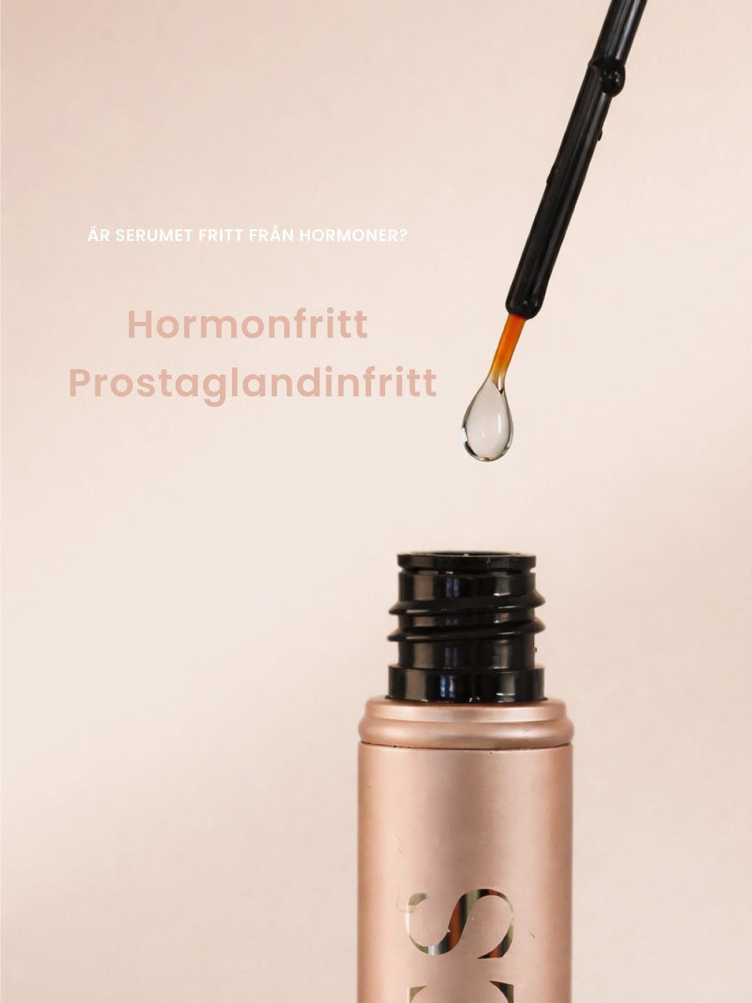 Nej. Vårt serum är helt fritt från prostaglandinanaloger och fokuserar på vård och styrka över tid.