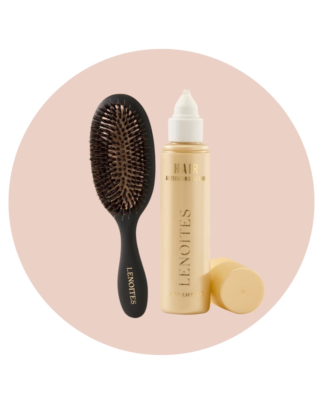 Detta set innehåller Hair Activating Serum, formulerat med kraftfulla, naturliga ingredienser som främjar tjockare, fylligare och starkare hår samtidigt som det minskar håravfall. Wild Boar Hair Brush hjälper till att reda ut håret, stimulera cirkulationen och ge extra glans för ett friskare och mer livfullt hår.Med en vegansk och dermatologiskt testad formula är denna duo din perfekta lösning för långsiktig hårhälsa och tillväxt.