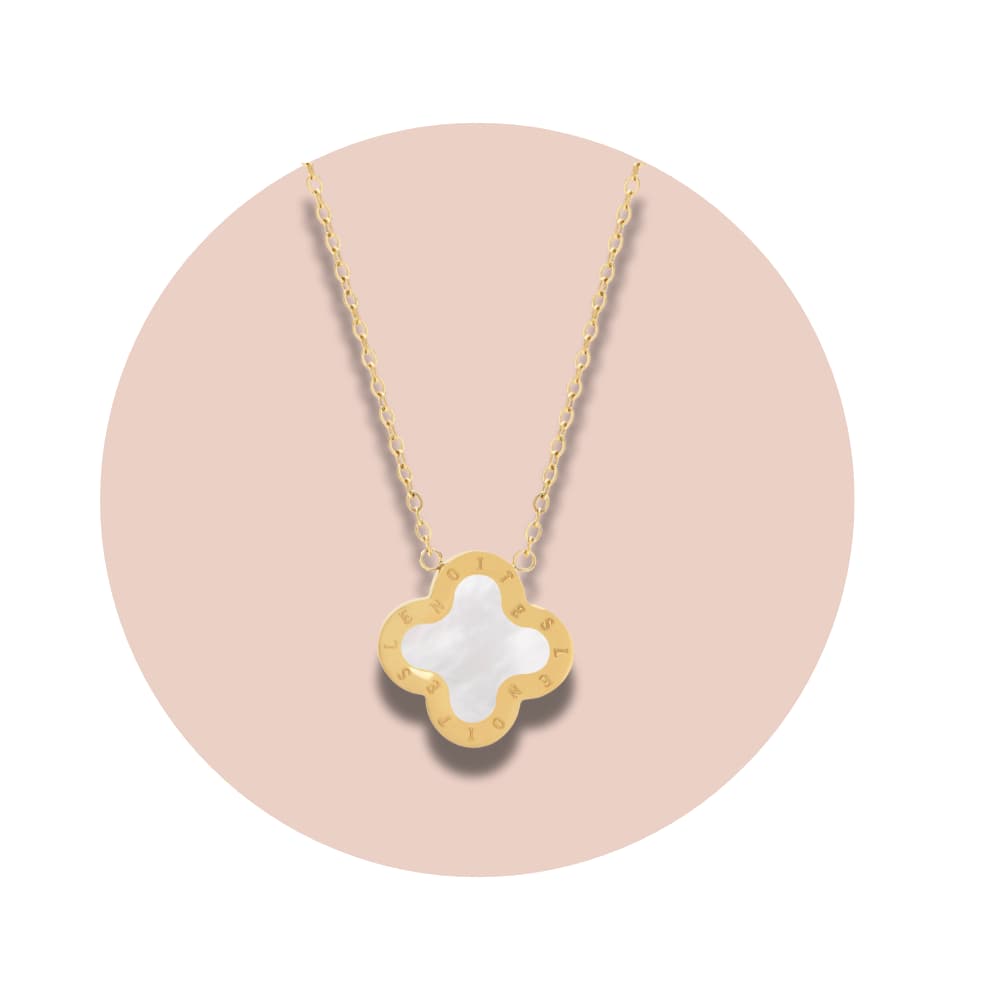 Halsband med motiv i form av en fyrklöver där de fyra löven tillsammans symboliserar tro, hopp, kärlek och lycka. Den klassiska men ändå lyxiga designen gör detta halsband till ett perfekt val för både vardag och festliga tillfällen. Oavsett tillfälle kommer detta halsband att tillföra elegans och lyfta din look.