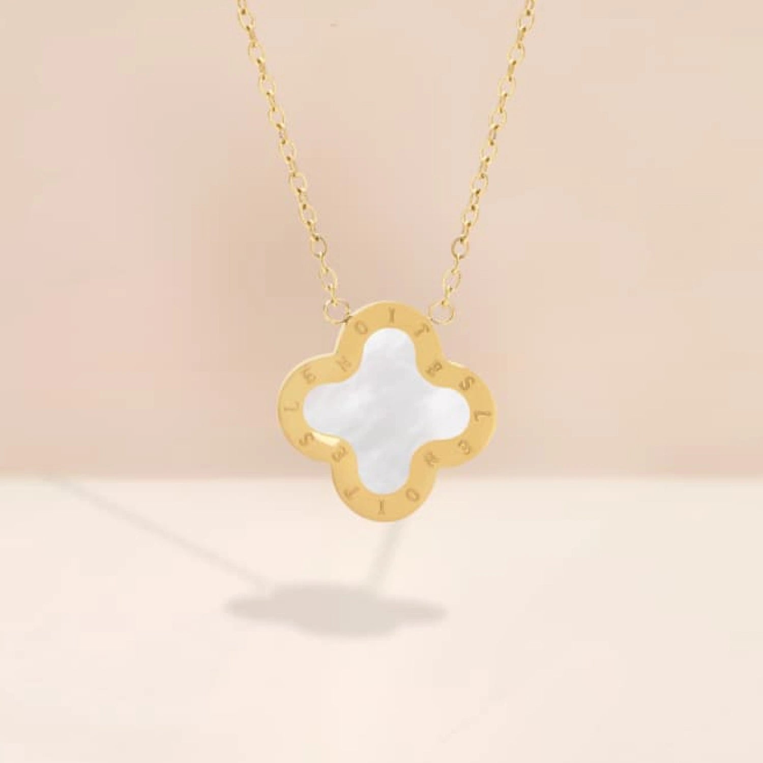 Vattentåligt halsband med fyra motiv i form av en fyrklöver där de fyra löven tillsammans symboliserar tro, hopp, kärlek och lycka. Den klassiska men ändå lyxiga designen gör detta halsband till ett perfekt val för både vardag och festliga tillfällen. Oavsett tillfälle kommer detta halsband tillföra elegans och lyfta din look.