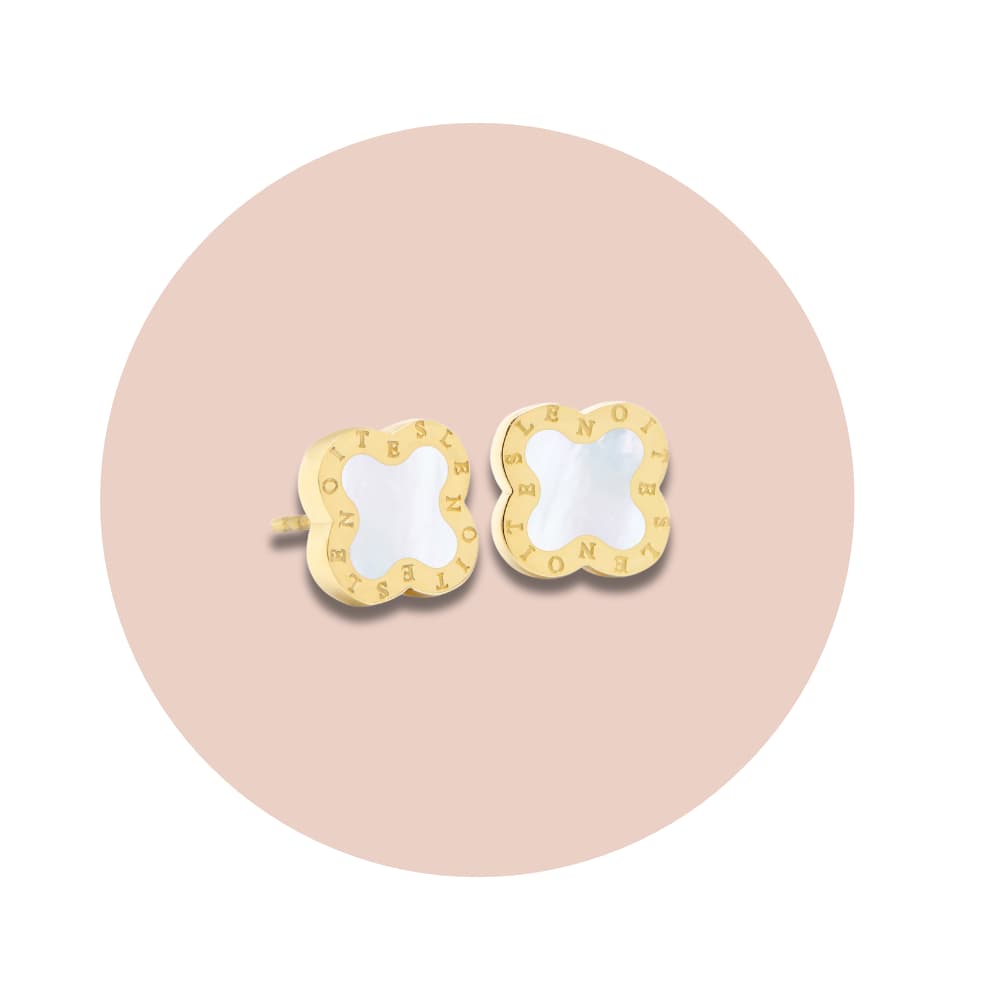 Vattentåliga örhängen med motiv i form av en fyrklöver där de fyra löven tillsammans symboliserar tro, hopp, kärlek och lycka. Den klassiska men ändå lyxiga designen gör dessa örhängen till det perfekta valet för både vardagsliv och festliga tillfällen. Oavsett tillfälle kommer dessa örhängen tillföra elegans och lyfta din look.