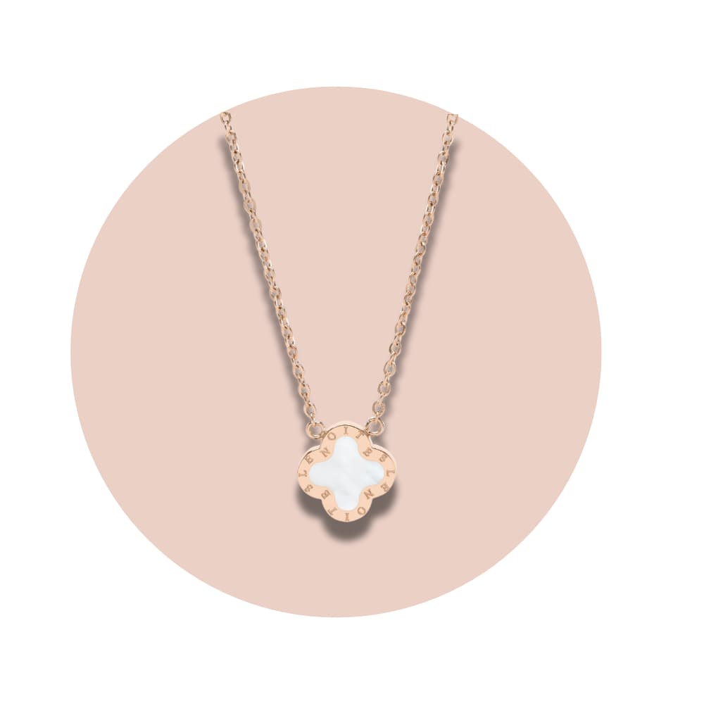 Vattentåligt halsband med fyra motiv i form av en fyrklöver där de fyra löven tillsammans symboliserar tro, hopp, kärlek och lycka. Den klassiska men ändå lyxiga designen gör detta halsband till ett perfekt val för både vardag och festliga tillfällen. Oavsett tillfälle kommer detta halsband tillföra elegans och lyfta din look.