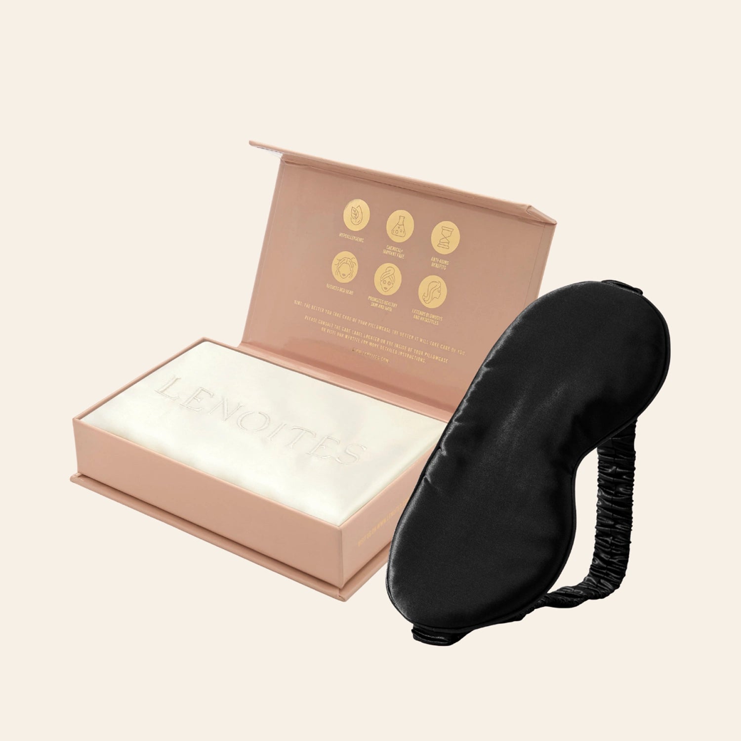 Upplev Silk Beauty Sleep med vår exklusiva kuddfodral och sovmask i 100% mullbärssilke. Det glansiga silkestyget i 22 momme ger en sval, mjuk och lyxig känsla som minskar friktion, bevarar fukt och lämnar både hud och hår mjukare och slätare. Alla våra silkestextilier är fria från skadliga kemikalier och certifierade enligt OEKO-TEX® STANDARD 100 certifierad (Certifikatnummer: BJ015 160136 & 24.HCN.11211).för en trygg och skonsam sömn.
